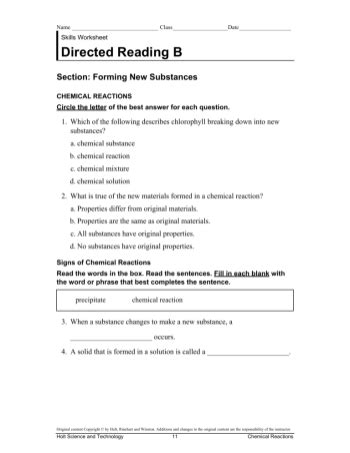 Read Skills Worksheet Directed Reading B Answer Key Reader